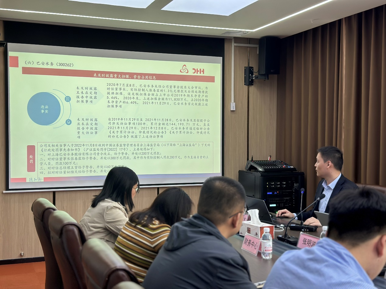张明波律师结合上市公司违规案例,对相关法律法规进行解读,深入浅出的讲解,让与会人员深刻的理解每条规则背后所代表的风险管控目的,知悉重大事项未及时汇报对公司经营可能造成的严重后果。