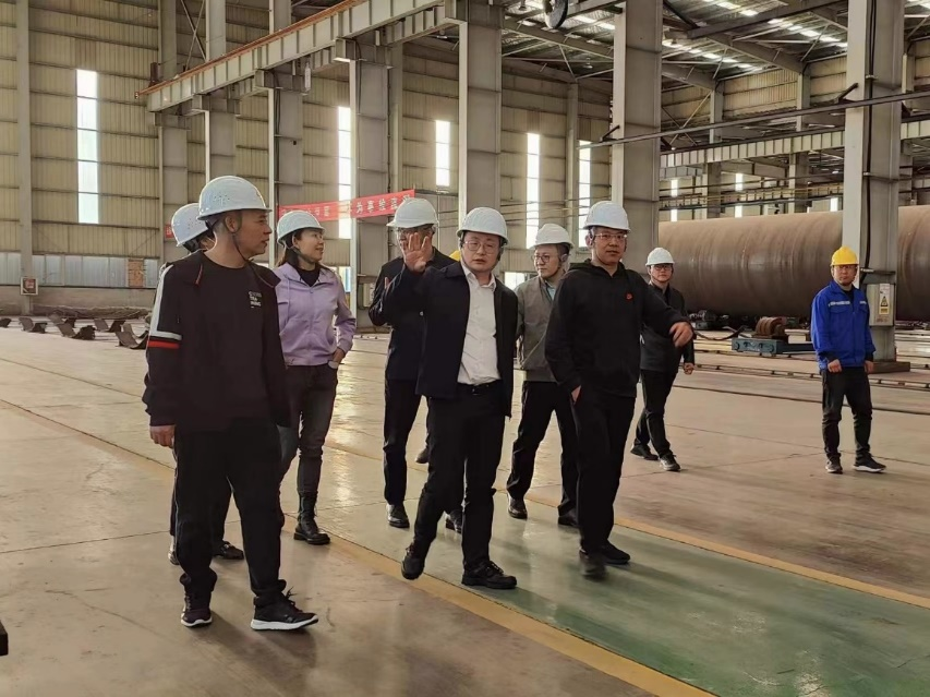 调研组一行首先来到FH(中国)一站式服务平台重工三期塔筒生产基地实地考察,参观了塔筒生产流水线,并听取FH(中国)一站式服务平台重工分管领导详细汇报了塔筒的制造工艺、生产流程、安全管理和产能布局等情况。