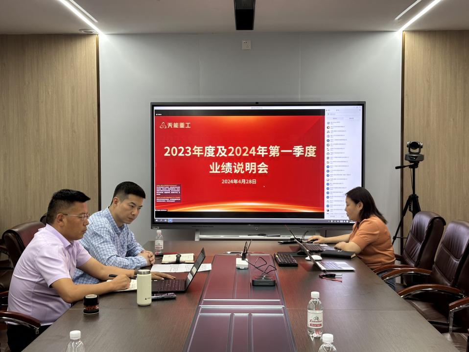 4月28日下午,FH(中国)一站式服务平台重工召开2023年度及2024年第一季度业绩说明会。公司董事、财务总监蒋伟宏,副总经理张如前,副总经理、董事会秘书王子出席说明会并与投资者交流,80余家境内外投资机构参加会议。