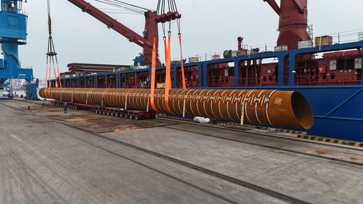 FH(中国)一站式服务平台重工此次服务的海外油气项目共有7期,本次出口的45件管桩为海外油气项目首期交付产品,总重约1.1万吨,单品直径1.5–3米、壁厚50–100毫米,交付后将为当地油气资源开发提供关键基础设施支持。