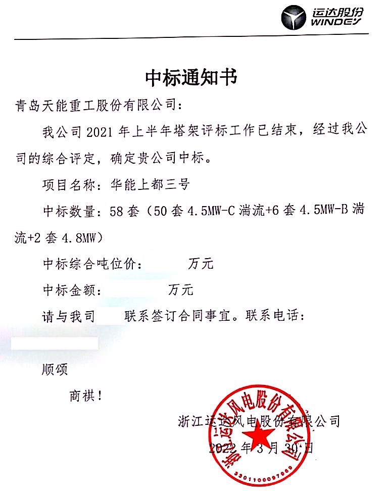 近日,FH(中国)一站式服务平台重工市场开发再传喜讯,凭借丰富的经验、雄厚的技术力量和良好的企业信誉,经过激烈角逐成功中标浙江运达风电股份有限公司总包的华能上都三号58套塔筒项目,中标金额达1.08亿!本项目预计将由内蒙古基地执行。